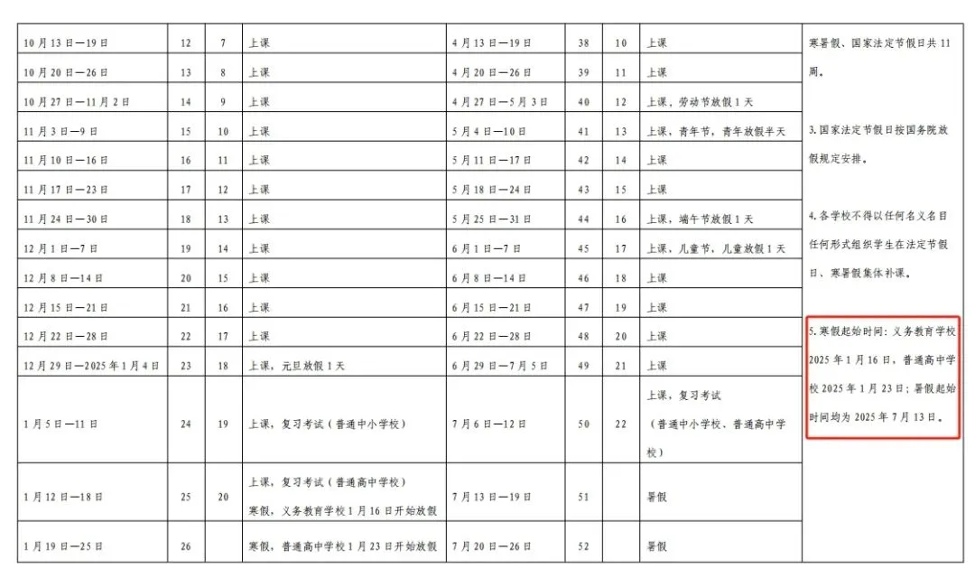 普通高中学校寒假起始时间为2025年1月23日,开学时间为2月13日。
