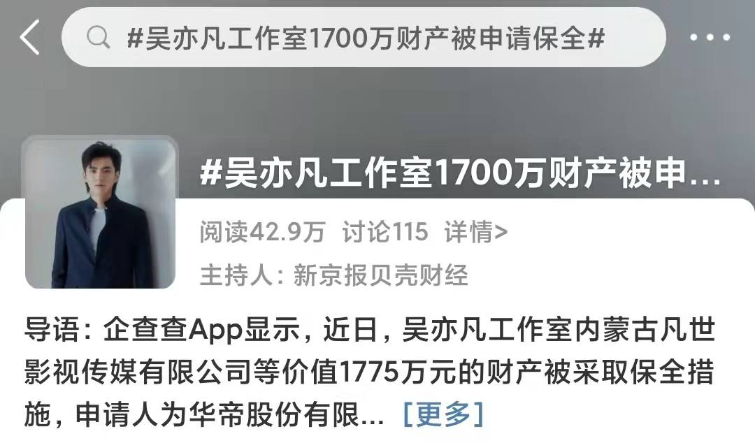 【防止财产转移?吴亦凡公司千万财产被申请保全】