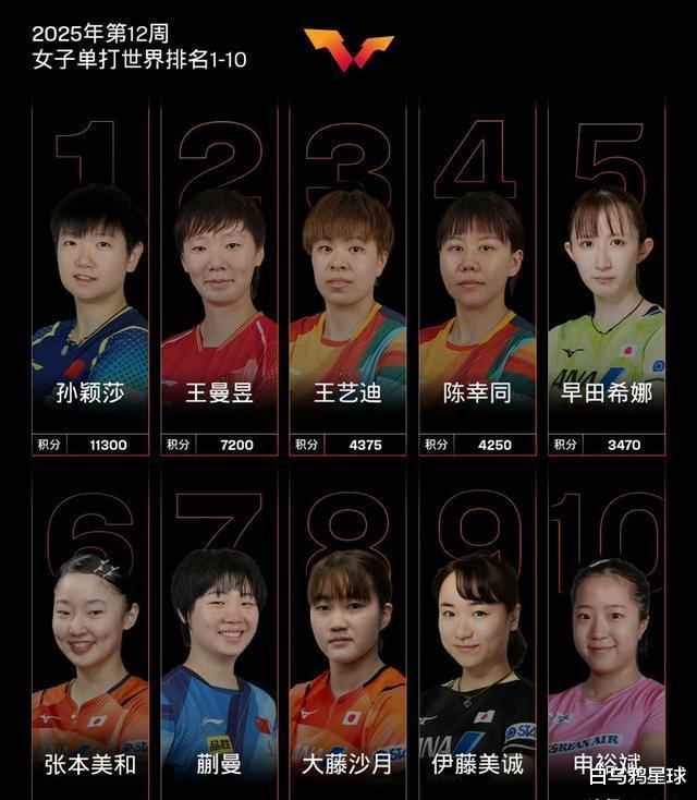 乒乓球女单排名的下一次重大变动预计会在4月出现。从4月1日起,WTT韩国仁川冠军赛将正式拉开帷幕。