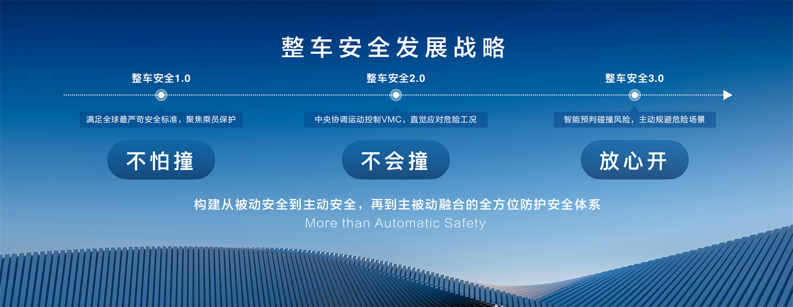 上汽用严苛的标准,构建了全球标准,让汽车成为钢筋铁骨下的移动堡垒,不怕撞;上汽构建了自主可控、成熟可靠的ADAS、VMC等数字智能技术,打造不会撞的主动安全,实现安全保障从99%向99.999%的进化;最后的万分之一,上汽以引领未来的主被动安全相结合的应对方案,发挥全链路、全打通、全开放的自研优势,实现跨系统的、精冗余的安全控制体系,万一撞了,也不怕。