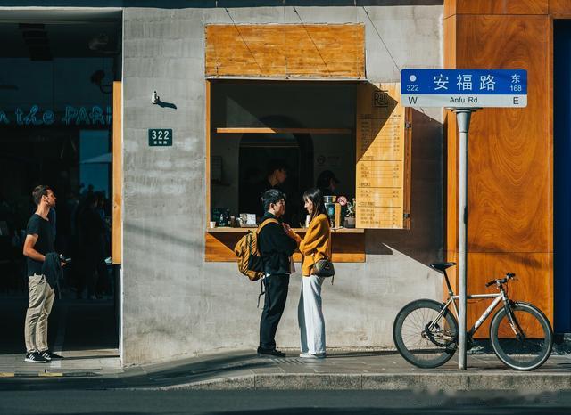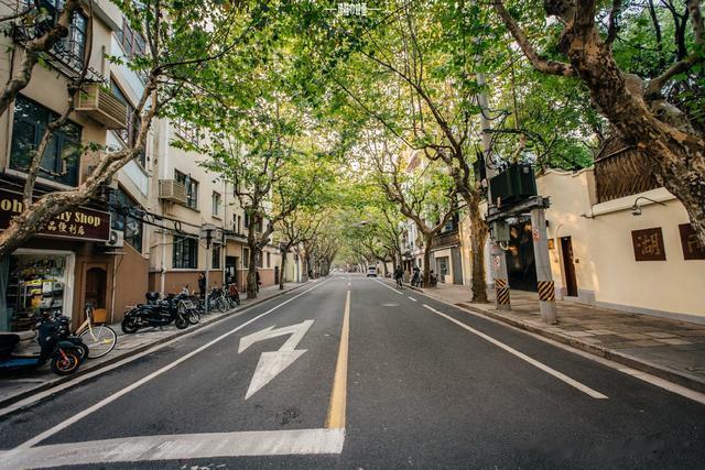 武康路-安福路街区的安福路也是一条深受游客喜欢的道路,是上海文艺腔的代表。安福路西起武康路,东至常熟路,全长约840米。安福路两侧也种植很多梧桐树,街上的店铺有一种文艺小清新的味道,不但有画廊、书店,也有咖啡店和餐厅。