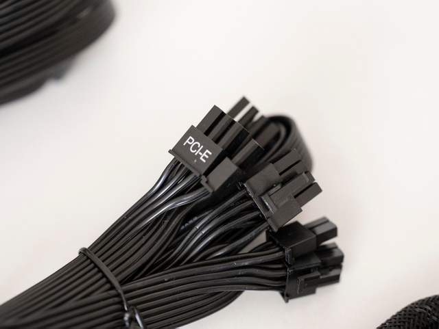 线材方面,骨伽GEX X2 850W标配了6组线材,其中包括一根24pin Main线、两根CPU线(一根4+4pin,一根8pin)、一根12VHPWR线、两根PCI-E线以及一根S-ATA线和一根P-ATA/S-ATA线。线材采用了扁线设计,一定程度上对装机友好一些,优点是质量好、性能稳定、价格便宜(标配),缺点则是线材本身颜值不够,如果是白色机箱的话,效果并不好。