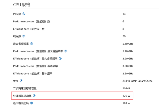 但是要要注意,CPU的TDP功耗并不是实际功耗。比如我的i5-13600KF,在详情页中“功率”为125W,但是,无论在满载之下,还是在超频,CPU的功率都是要超过TDP125W的。所以,在选择电源的时候,还是先要算一算。