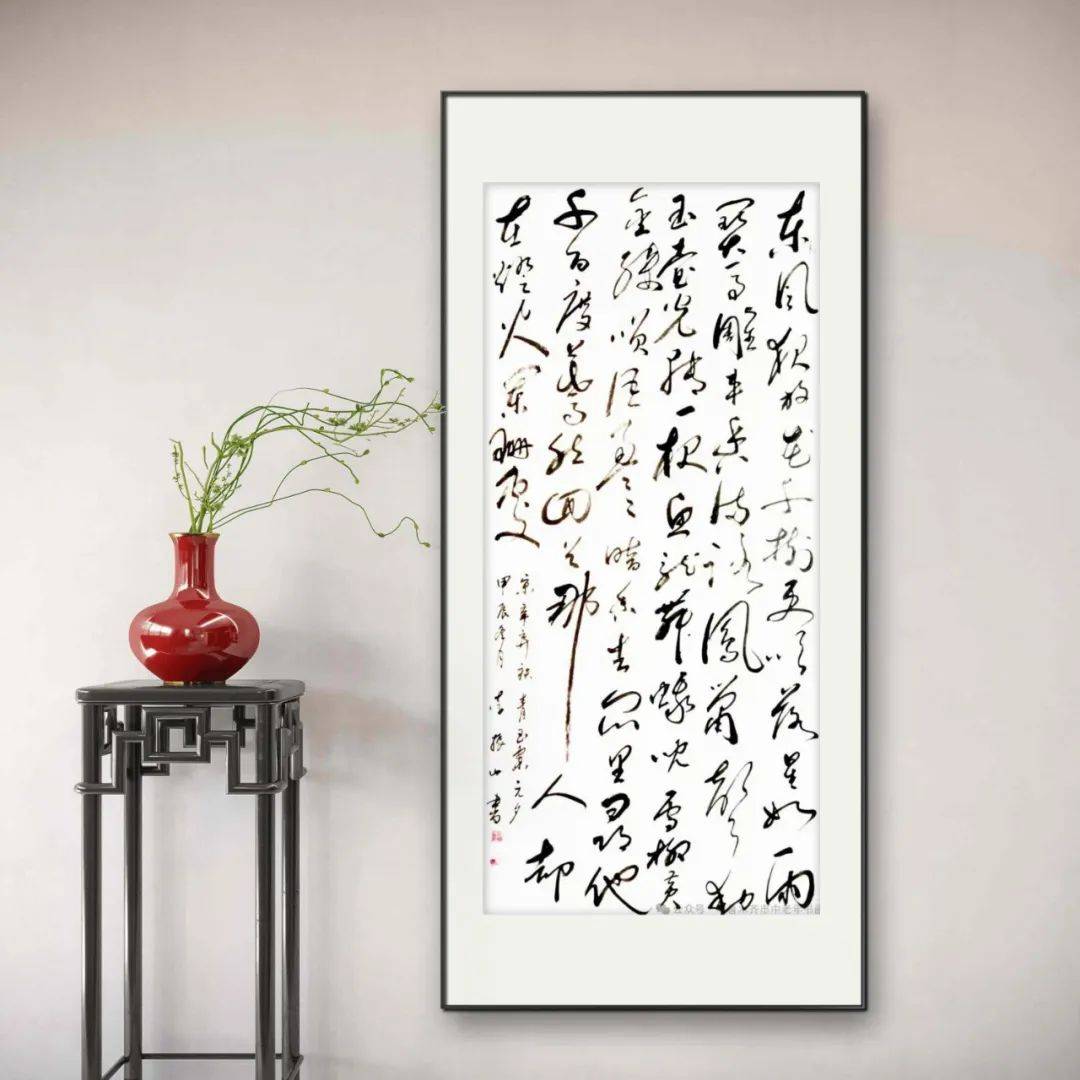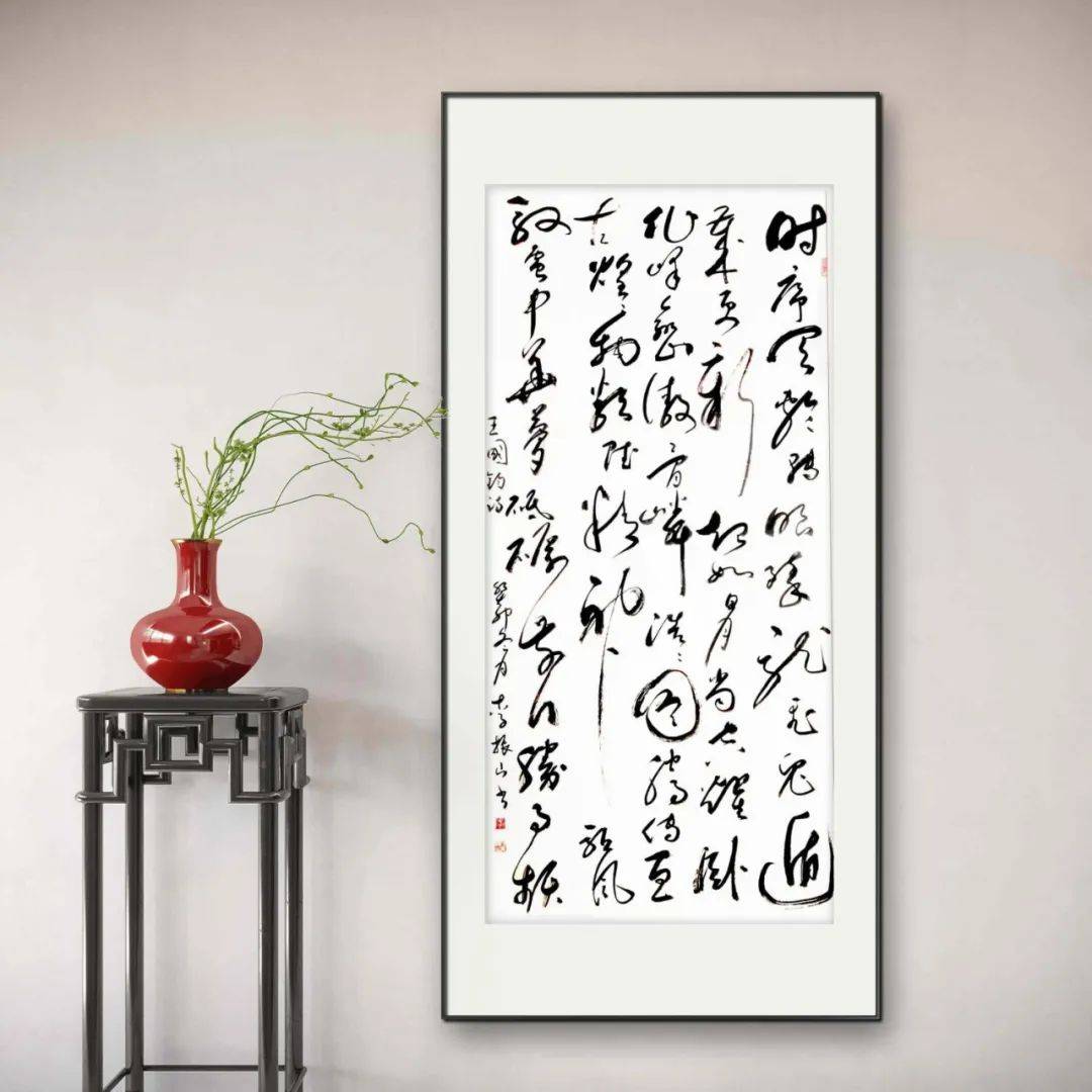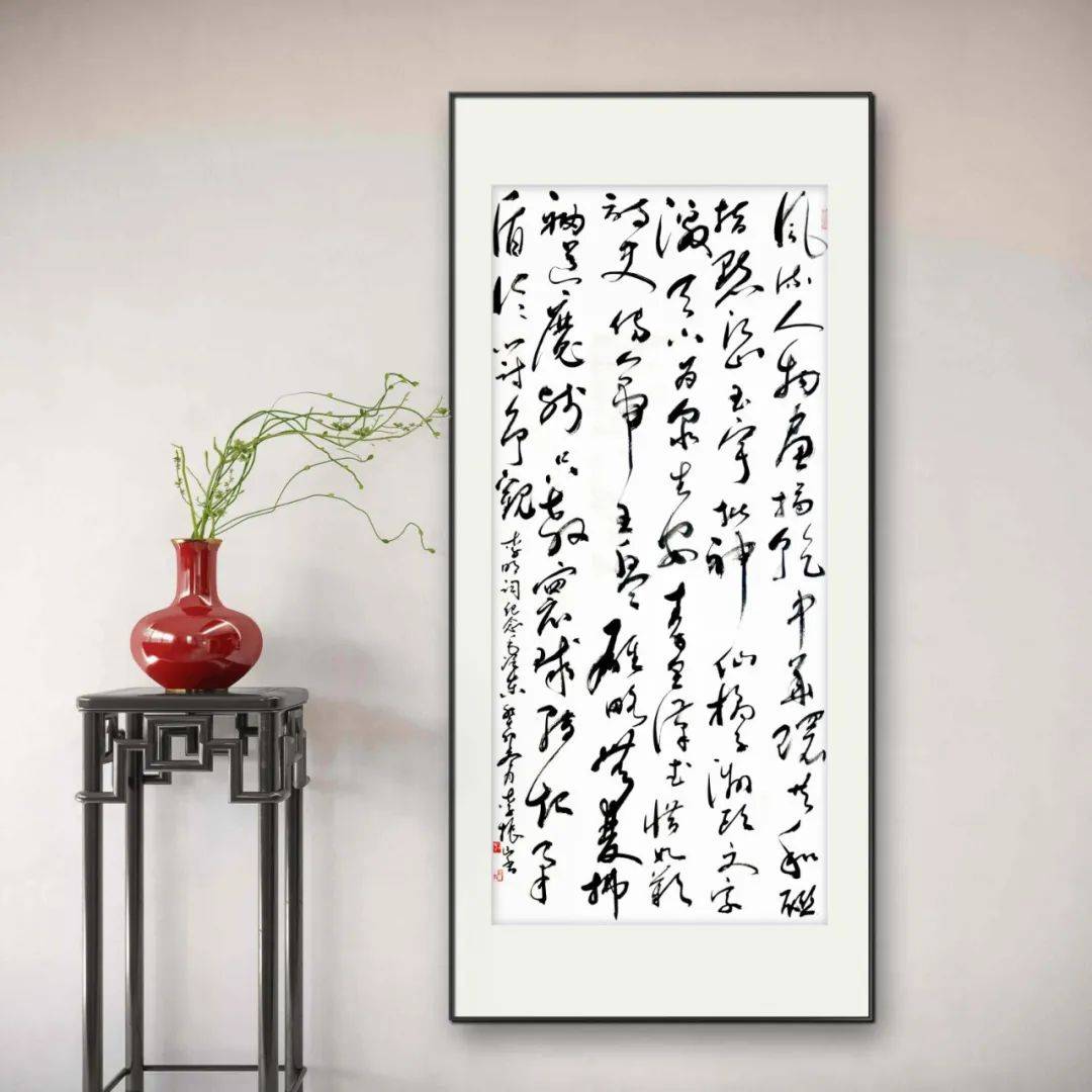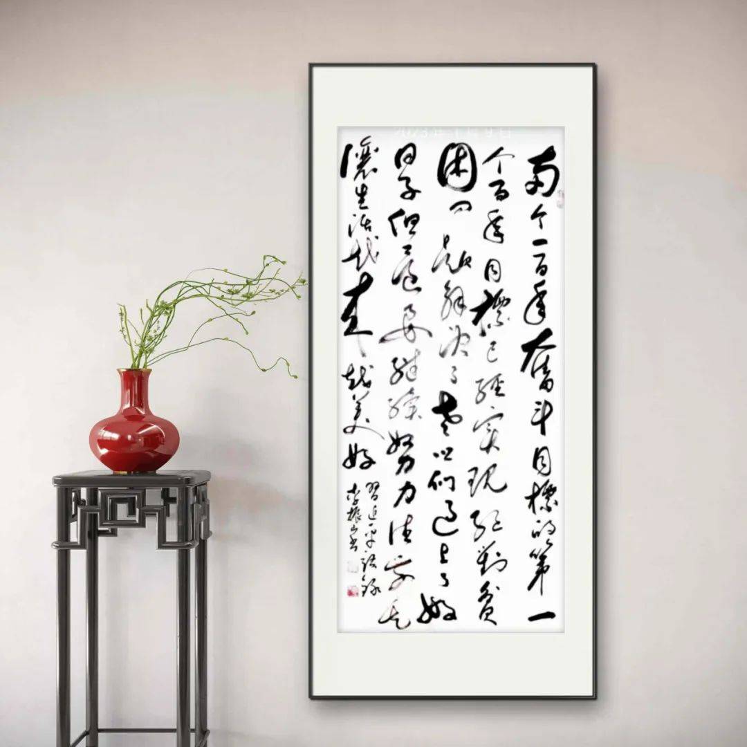 在章法上,李振山先生的作品气势恢宏,连绵不断,字与字、行与行之间相互呼应,一气呵成,给人以强烈的视觉冲击。先生的草书风格豪放洒脱,充满了强烈的个性色彩和艺术感染力,结字严谨,浑然一体,和谐美巧,奥妙绝伦,有一种神采飞扬的意趣美。