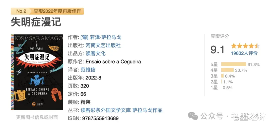 我们正在一天比一天失明,因为我们越来越不愿睁眼去看世界。归根结底,这部小说讲的就是:我们所有人都在理智上成了盲人。