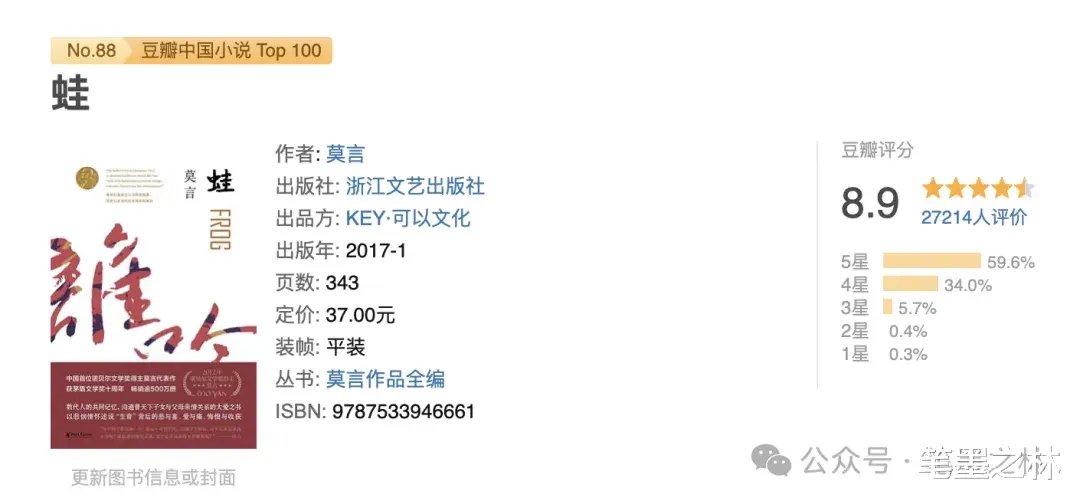 莫言自谓,《蛙》这部小说是对自己人生几十年的回顾,在很多冠冕堂皇的借口之下,掩藏着很多个人的私念和私心。《蛙》有一个重要的意义,这个重要的意义是面对自我,是面对自己的内心进行挖掘,是一种自我批评的精神。