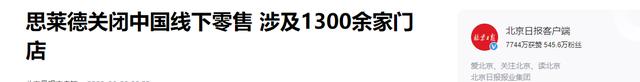 北京日报客户端:思莱德关闭中国线下零售 涉及1300余家门店