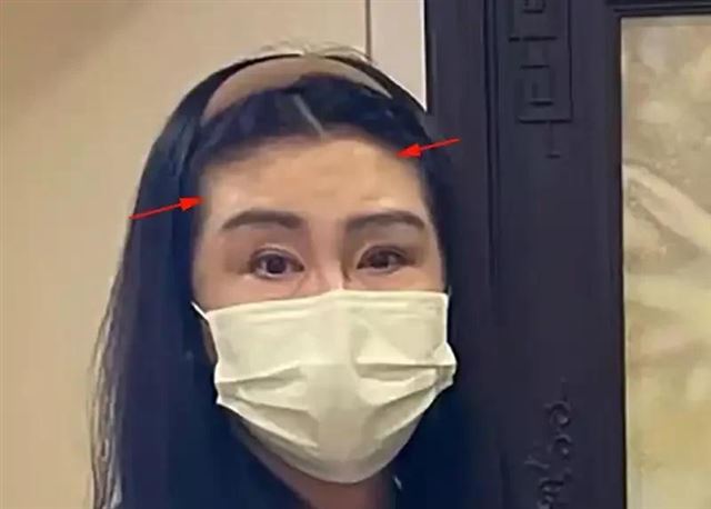 照片中的她,额头上的赘肉堆叠,眼睛周围的刀痕明显,与昔日的形象判若两人。