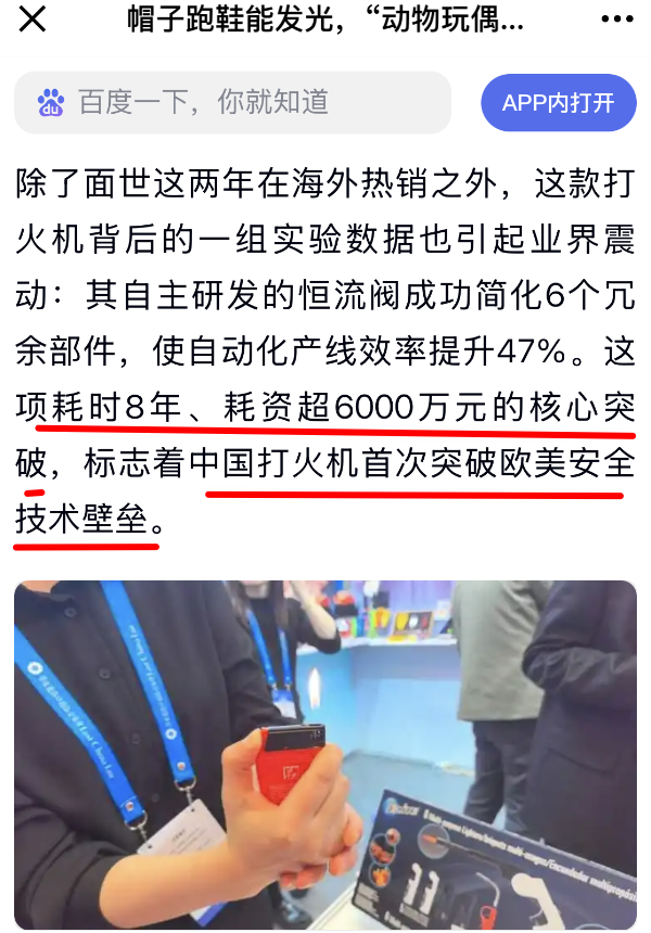 不,不是这样的,新闻里写了,“这标志着中国打火机首次突破欧美安全壁垒。”