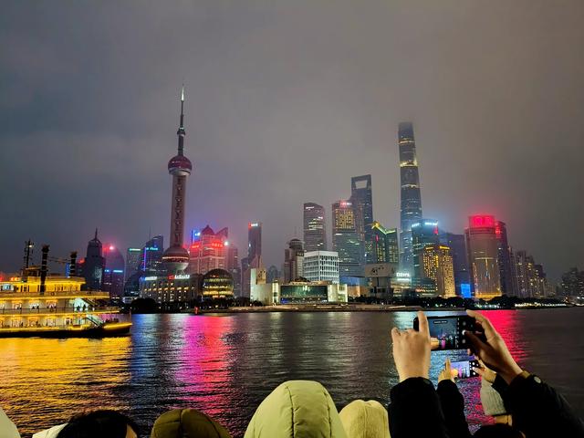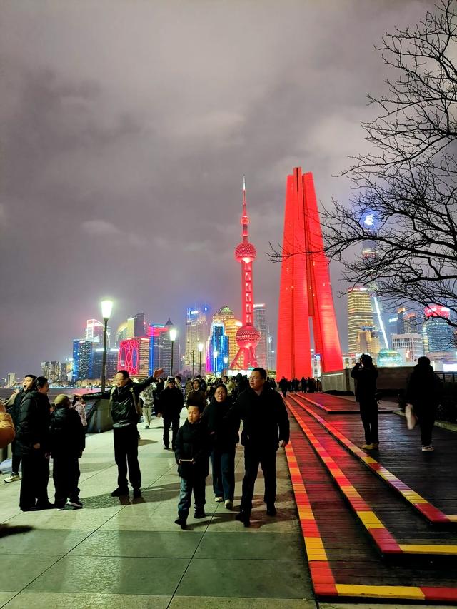 路线四:南京路步行街,也是坐地铁,好方便。南京路步行街是一条闻名遐迩的商业大道,承载着上海的百年沧桑与变迁,成为了上海不可或缺的一道亮丽风景线。走到尽头是外滩,还没有到晚上,已是好多人站那里等着开灯呢?包括我们也是一样,提前站好位置,等着倒数,天一暗,建筑物慢慢亮起了光,外滩则被璀璨的灯光所照亮,霓虹灯闪烁,将整个区域装点得如梦如幻。从远处眺望,那林立的高楼大厦和历史建筑交相辉映,展现出上海独特的城市魅力。