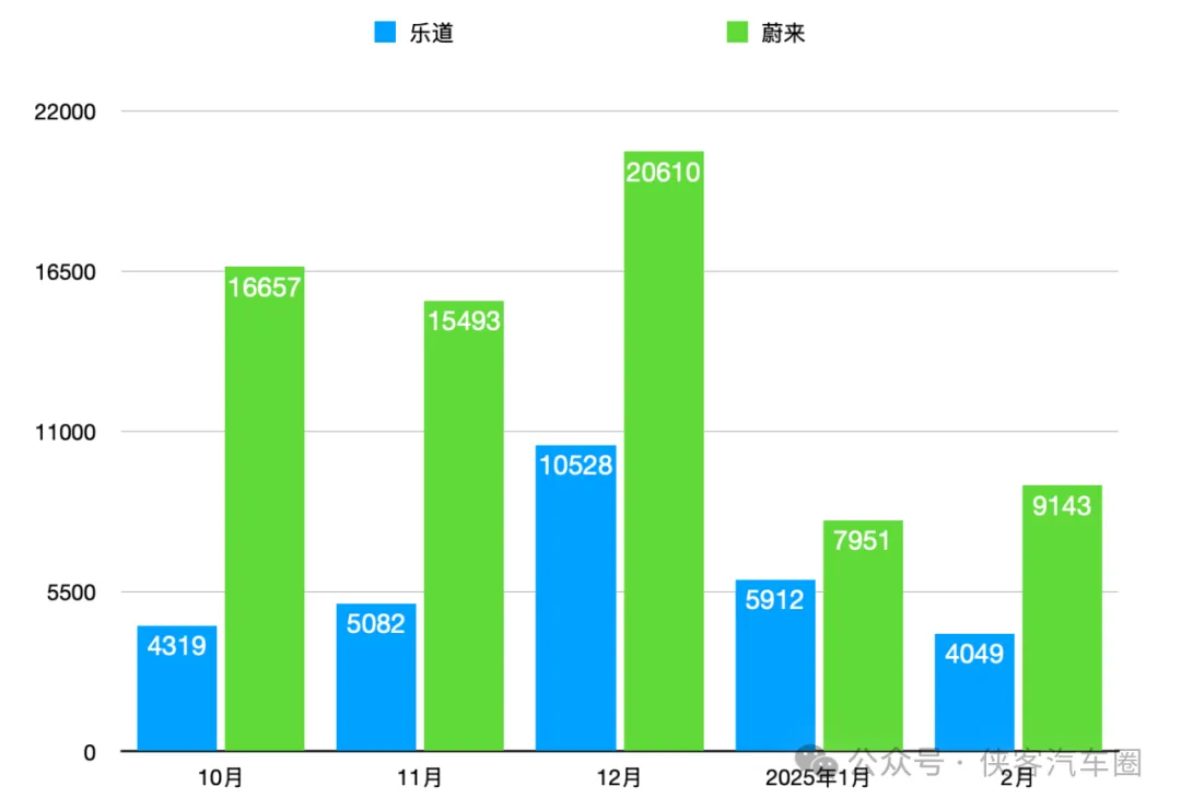 从最近五个月乐道的销量数据来看,乐道销量低开高走,从去年10月份的4319辆快速增加至12月的10528辆,但随后进入2025年,1-2月销量分别为5912辆、4049辆,连续下滑。联想此前乐道爆出强制员工购车,也就是说,走高的销量或许有员工购车的推动,消除这一原因后,乐道在2025年展示出了展示的销量数据。