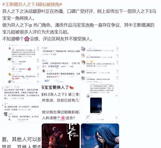 最近,随着剧情的逐步展开,一个爆炸性的消息迅速震撼了大家,那就是关于“王影璐可能会被换下《异人之下3》”的传言。