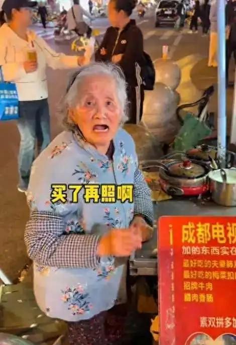 原来婆婆一看到的对方是举个手机,在镜头前面刻意的问价“婆婆,蛋烘糕好多钱一个?”,她就知道这个人是明显的摆拍。