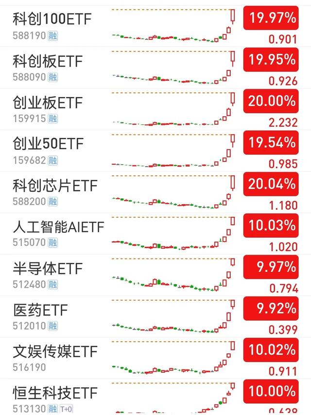无数ETF拉出20厘米的涨停,创下活久见的奇迹。