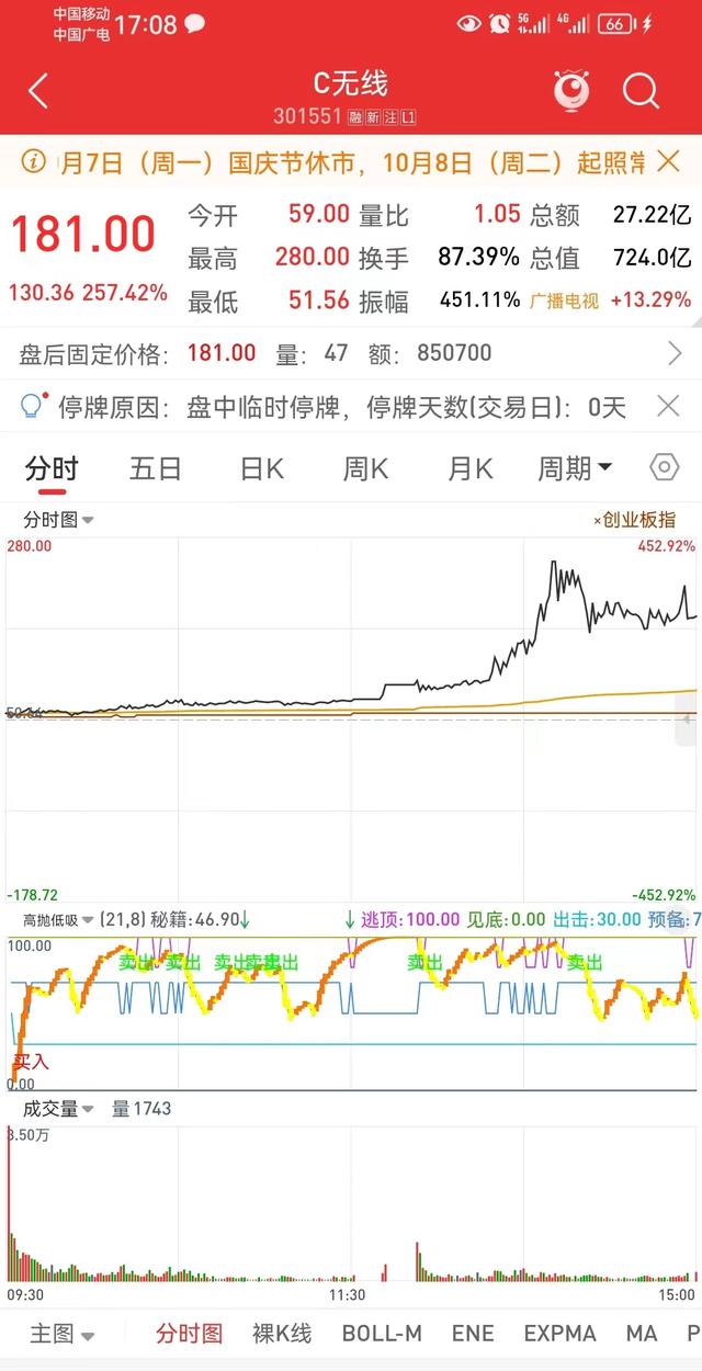 更有前几天踏空资金,今天一早涌入了上市五天内的次新。一开盘就买入C无线的话,日内就能获得三倍的收益。