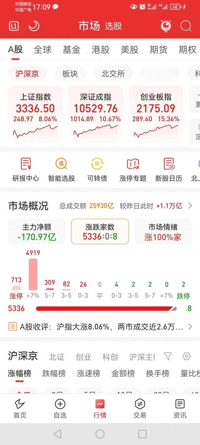超过5600只股票涨幅在7%以上,手里股票没个涨停的都不好意思出来和人打招呼了。