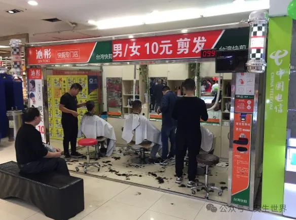 ① “穷鬼套餐”专区:- 9.9元剪发 + 15元工作餐 + 1元充电宝(打工人刚需)- 但必须穿过整个商场才能找到(逼你路过其他店铺)