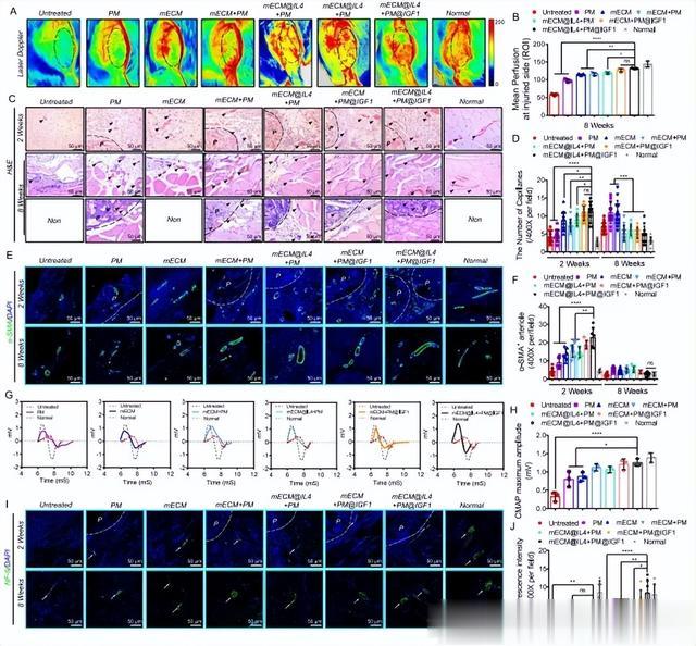 【mECM@IL4 + PM@IGF1 复合材料促进了再生肌肉的血管化和神经化】