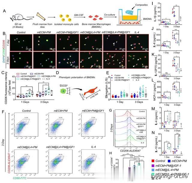 【mECM@IL4+PM@IGF1复合材料可协同诱导原代巨噬细胞极化为促再生表型】