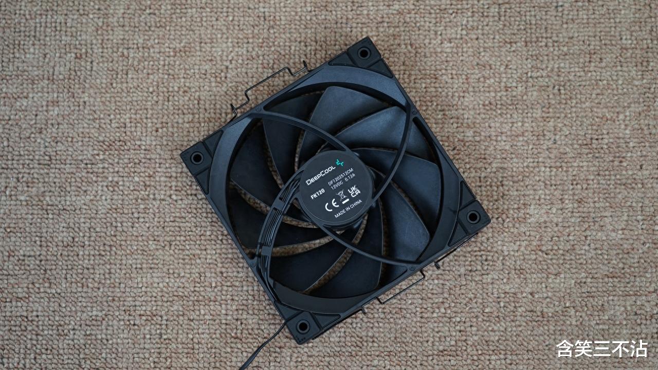 散热器标配了1把12cm的FDB轴承风扇,该风扇支持PWM调速,配合边角包胶处理,减震降噪效果明显。