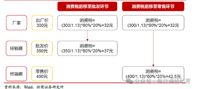 由于消费税属于价内税,后移以后税基从出厂价变为零售价,在税率不变的情况下,需要缴纳更多的税提高产品价格。