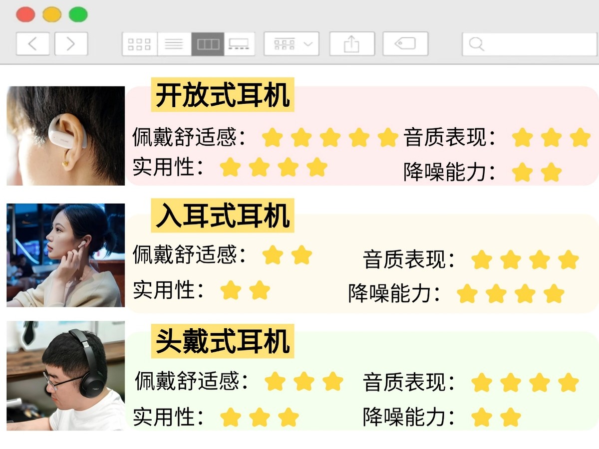 安全性能佳:户外运动或过马路时,入耳式耳机隔绝外界声音,存在安全隐患。开放式耳机能让你听音乐时留意周围动静,比如骑行时听到喇叭声,保障人身安全 。