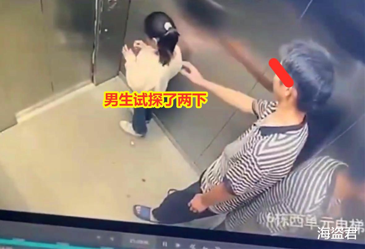 当时电梯里只有他们两个人,女童按完电梯就开始玩手,男生站到了女童背后。