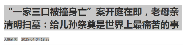 “一家三口被撞身亡”案开庭在即,老母亲清明扫墓:给儿孙祭奠是世界上最痛苦的事