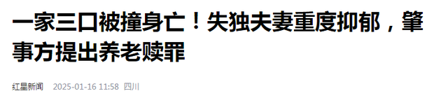 参考信息:一家三口被撞身亡!失独夫妻重度抑郁,肇事方提出养老赎罪