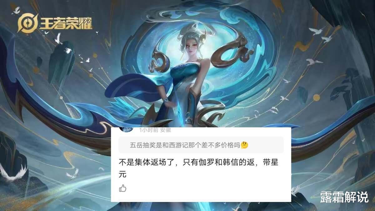 并且这两款皮肤在返场的同时,还会推出星元,伽罗的是星传说,韩信的是星史诗。两款皮肤抽奖的价格都比较贵,伽罗的太华估计和一款无双限定皮肤差不多,而韩信的史诗也要两三百块钱左右。不过这两款皮肤的星元价格倒是不贵,太华星传说的价格大概和一款传说皮肤差不多,而韩信星史诗的价格也和一款史诗皮肤差不多。