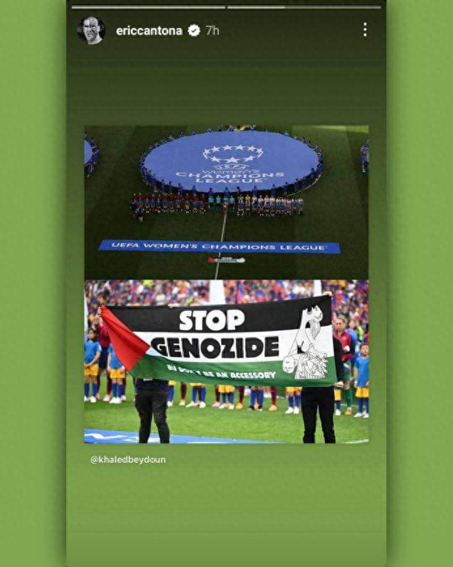 他在社交媒体分享说:“支持巴勒斯坦人权并不等同于支持哈马斯,也并非反犹主义。“自由巴勒斯坦”主张结束以色列占领,停止对巴勒斯坦人的禁锢,废除种族隔离政策,并确保巴勒斯坦人对其基础设施的控制。”著名的法国导演皮尔斯也转发了坎通纳的社交媒体,表达对观点的支持。