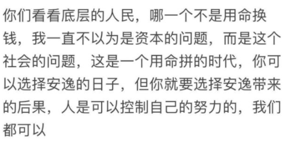 官方账号以高傲的口吻回应“底层人民”:这是一个用命拼的时代。他们认为,人是可以控制自己的努力的。也就是说,员工猝死,死于不懂得控制。全国上下打工者一片愕然,愈发认清了一个现实:资本无情吃人不会停止,人人保命才是首要任务。