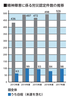 除直接给身体上带来损害,精神上的伤害也应该属于“过劳死”的一部分。根据厚生劳动省的数据,因为工作而导致精神障碍的人数逐年增加,不堪压力心情抑郁导致自杀的打工者大有人在。
