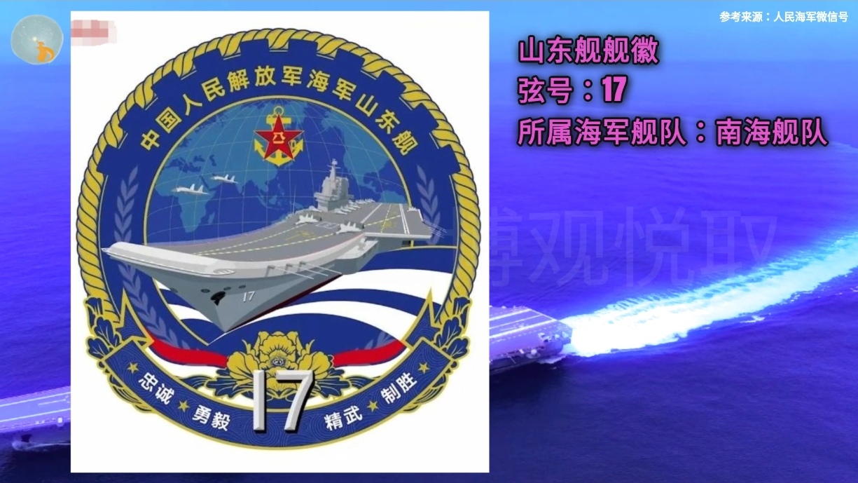 介绍:山东舰是中国第二艘航空母舰,舰徽中融合了山东地域文化元素,彰显了中国海军的雄壮与威武。