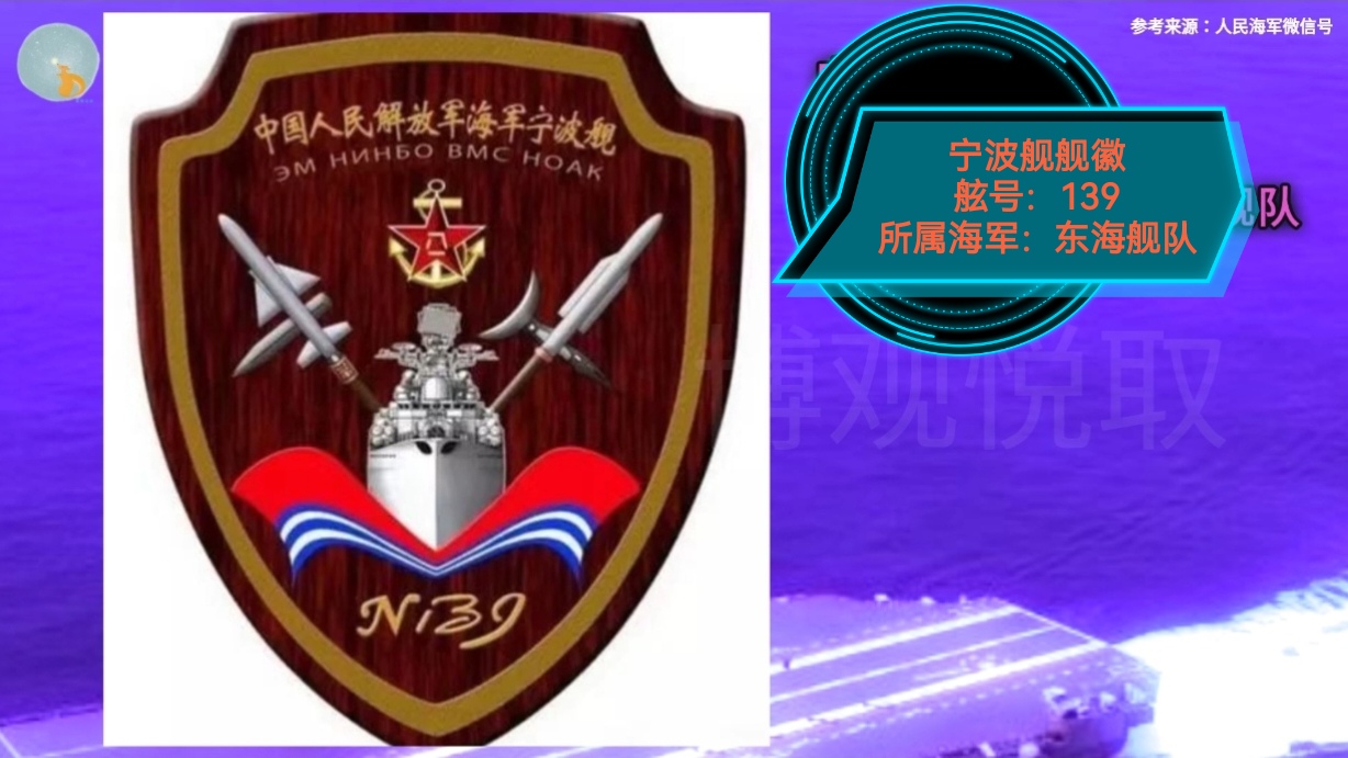介绍:宁波舰的舰徽融入宁波的海洋文化和历史元素,展现宁波舰的独特风采。