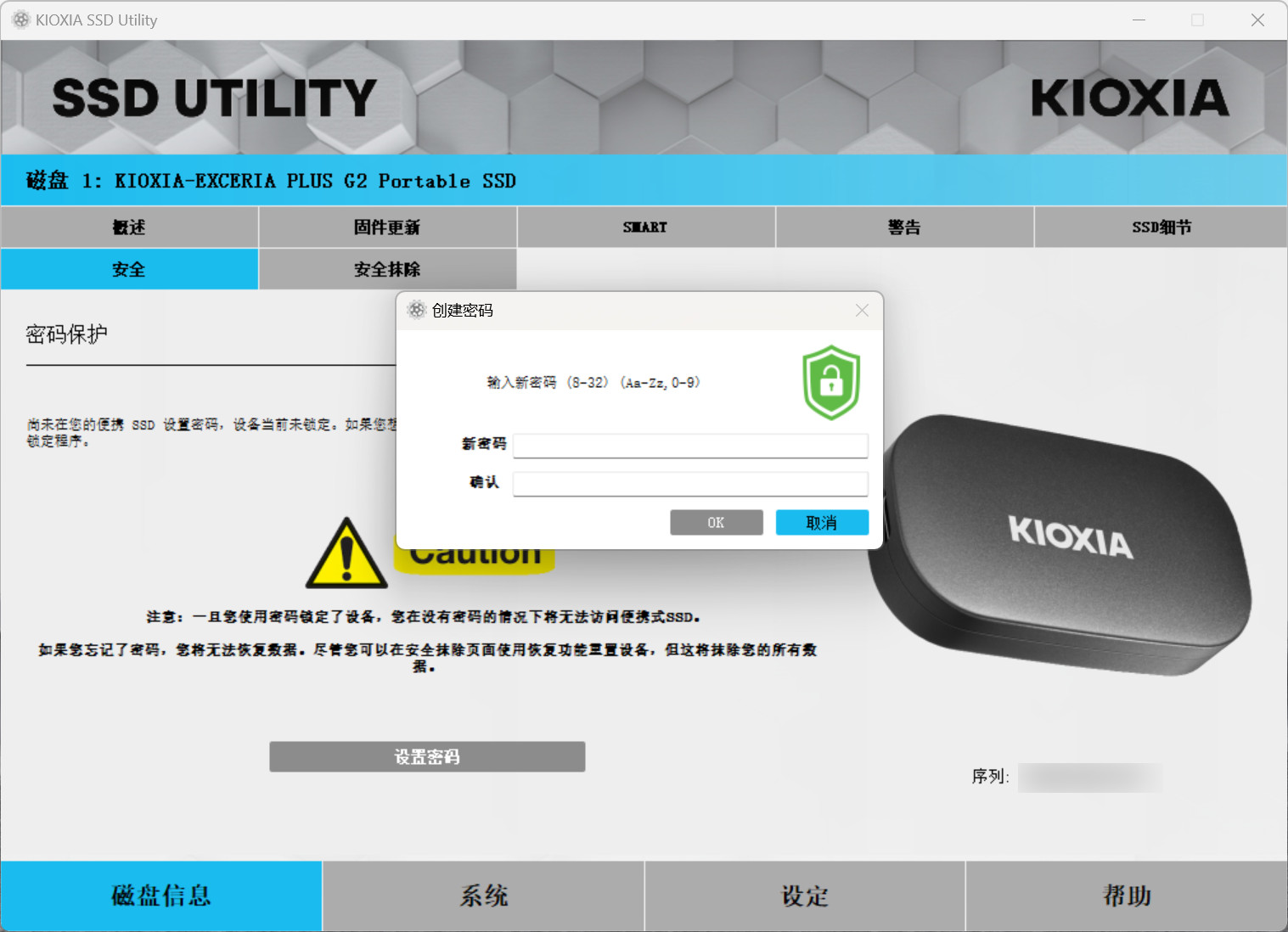 EXCERIA PLUS G2移动固态硬盘十分注重数据的安全,通过铠侠SSD软件管理工具-SSD Utility可以对硬盘加密,这样即便是我们不慎遗失硬盘,也不用担心数据泄露。
