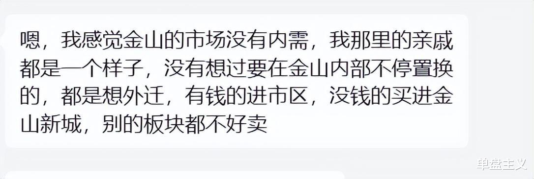 没有内需,有钱的想置换外区,进市区,最差最差没钱也只买到金山新城,别的板块更难卖了