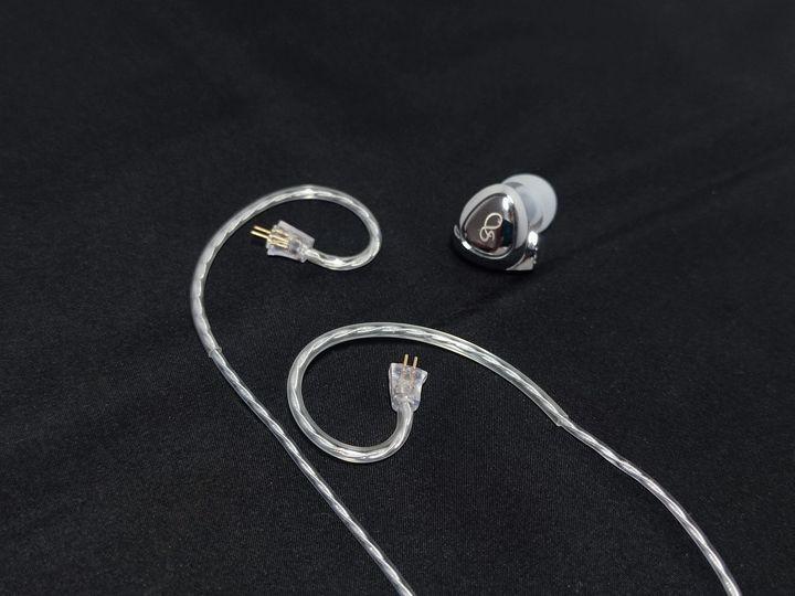 山灵SONO耳机的金属外壳非常亮眼,耳机外壳由合金熔铸成型+CNC精雕细节加工+纯手工抛光打磨而成,圆润的腔体弧度使得人不由自主地抚摸上去,耳机采用0.78mm 2pin的耳机接口,能够适配多种线材,耳机单边重量只有8.6g,对于挂耳式耳机,这个重量可以说是无感佩戴了。