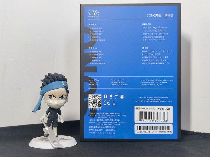 先看其外包装,体积很小巧,抽拉式设计,在配色上是黑色与蓝色的拼接设计,保证正面是SONO的Logo,背面则是简体中文、繁体中文、英语、日语,4种语言标注的核心卖点和基础参数。