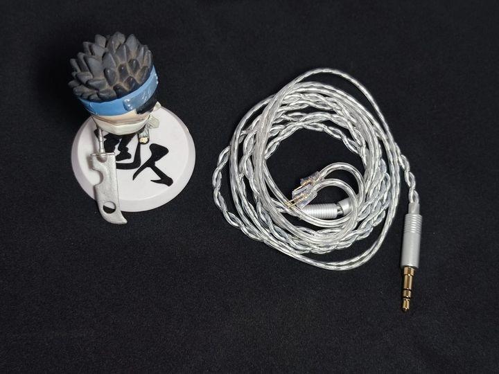 线材整体松软,线皮质地厚韧,粗细适中,透明度很高,可以看到内部银白线芯,五金件和金属插头都相当有质感,插头是标准0.78规格。