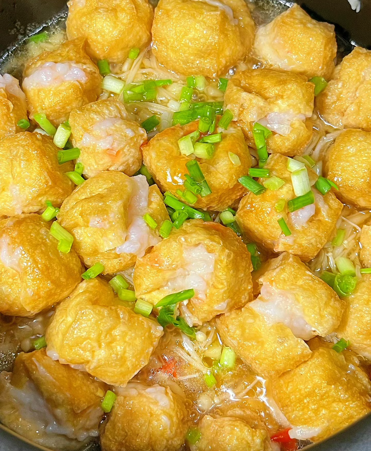在调味方面,豆泡酿虾滑的汤汁是关键。将高汤烧热,加入盐、糖、酱油等调味品,调制成适合个人口味的汤汁。然后,将焯水后的豆腐块放入汤汁中,小火慢炖,使豆腐充分吸收汤汁的味道。最后,撒上葱花、香菜等点缀,淋上几滴香油,增加菜品的香气和口感。