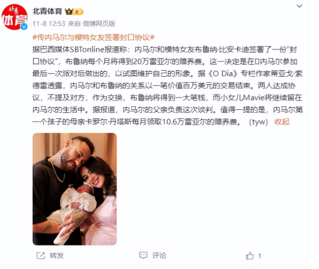 在这段充满波折的爱情故事中,一个新的角色静静登场——10月7日,内马尔和布鲁娜迎来了他们的女儿马维。这个小生命的到来,本应是他们关系的一个新的开始,一道光明的曙光,预示着更加和谐与稳定的未来。
