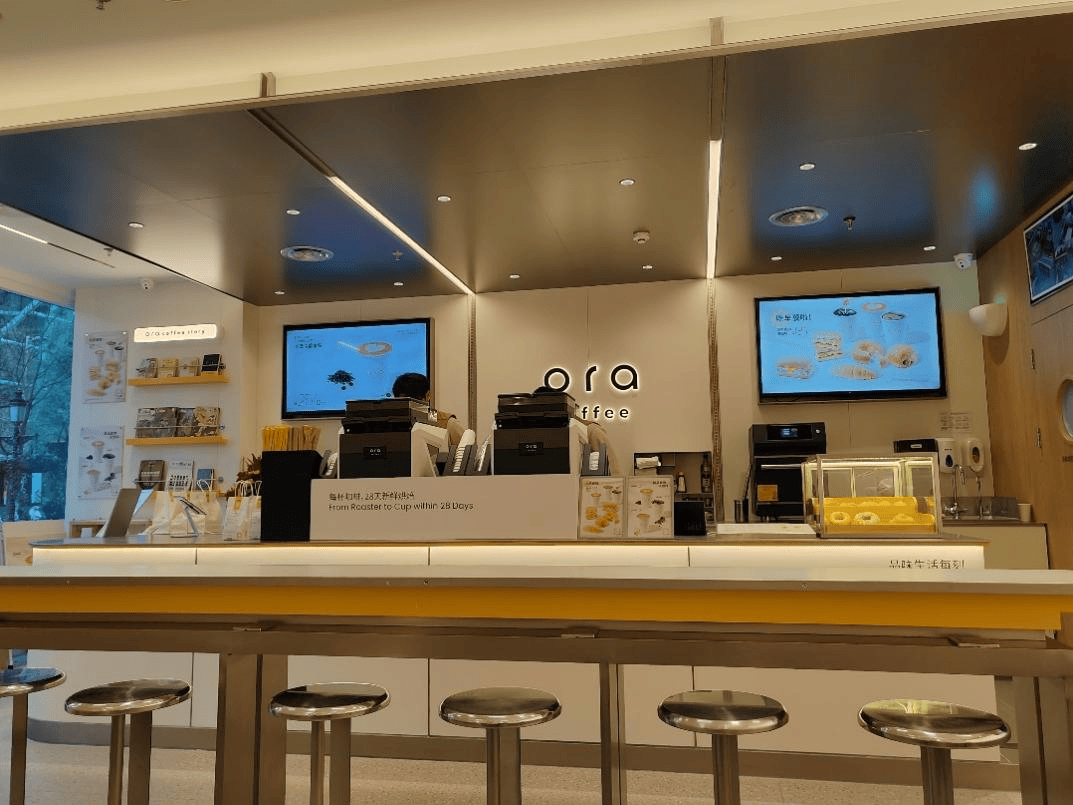 与皮爷咖啡高端门店的风格迥然不同,Ora Coffee主打小而精的门店模式,注重简洁设计和外带便利性。