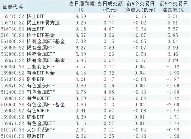 股票型ETF方面,稀土板块逆势走高,有色金属板块涨势明显,截至收盘,相关ETF霸屏领涨。