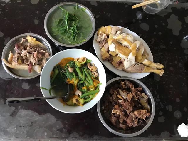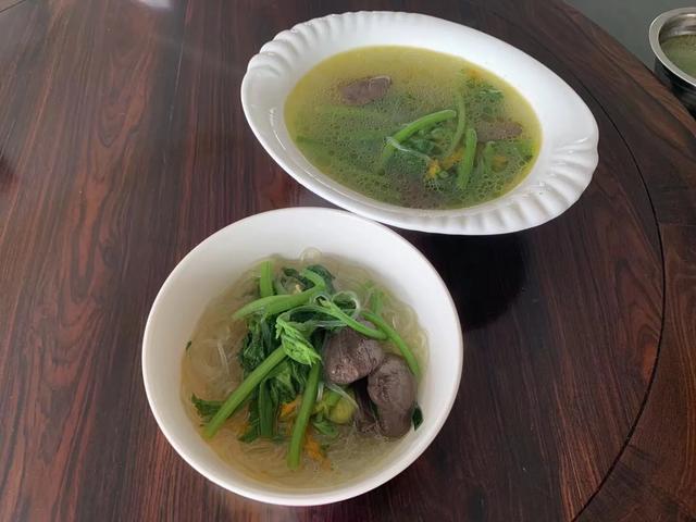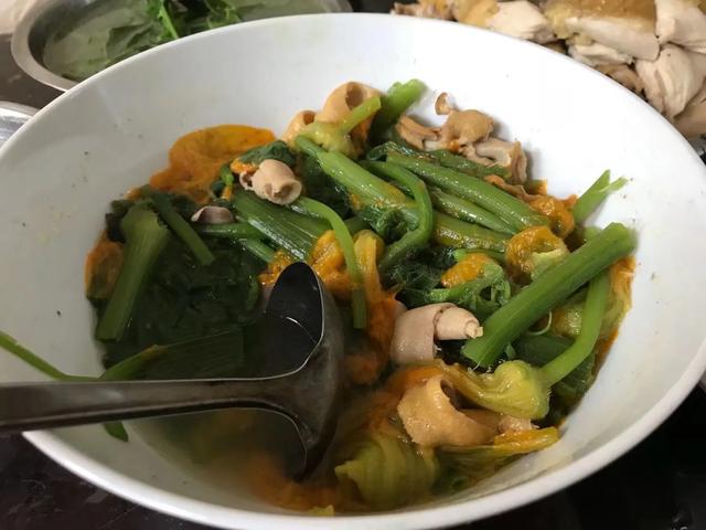 做白切鸡时煮鸡的汤里放青菜,在很多广西人家里很常见。