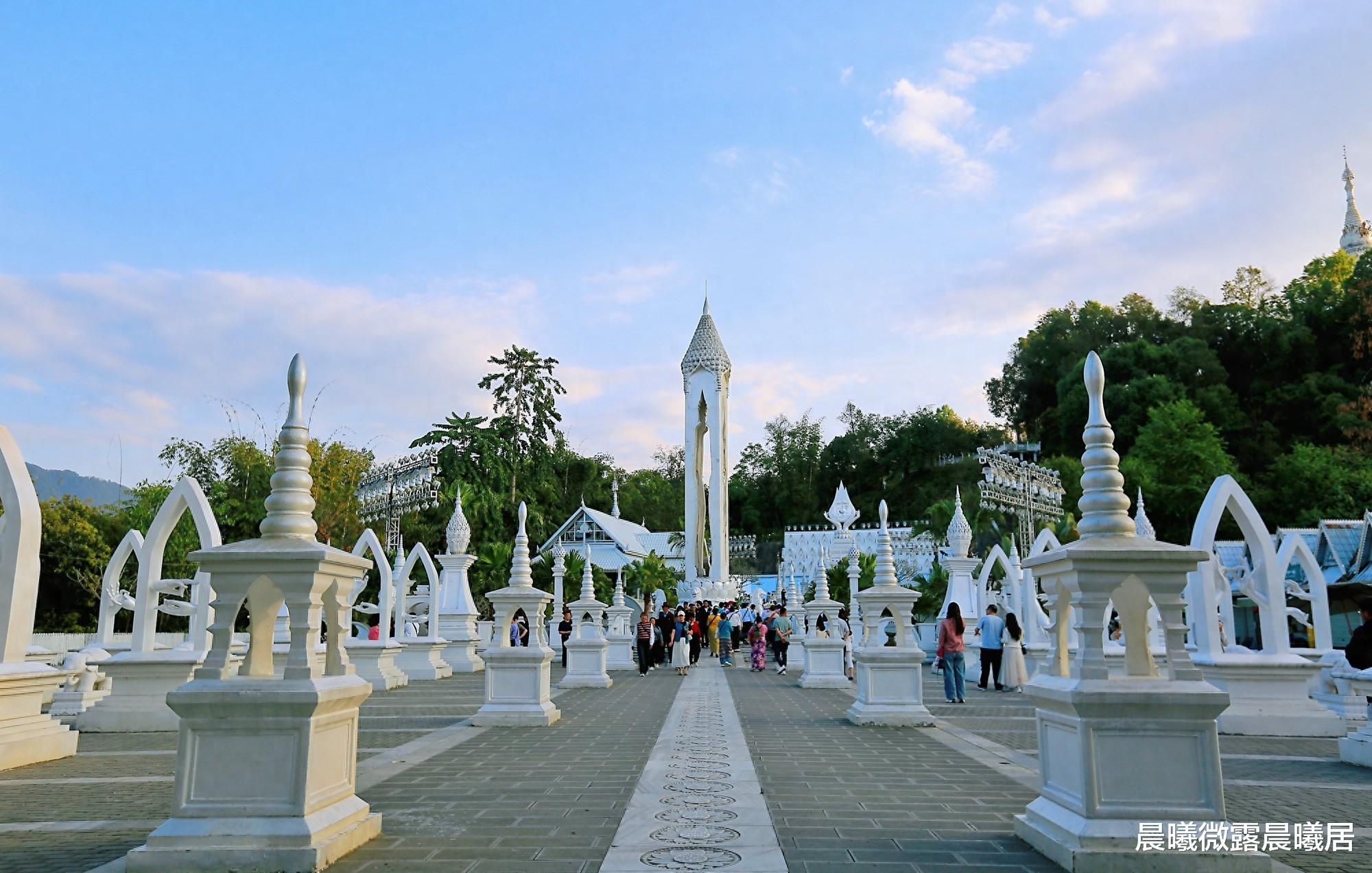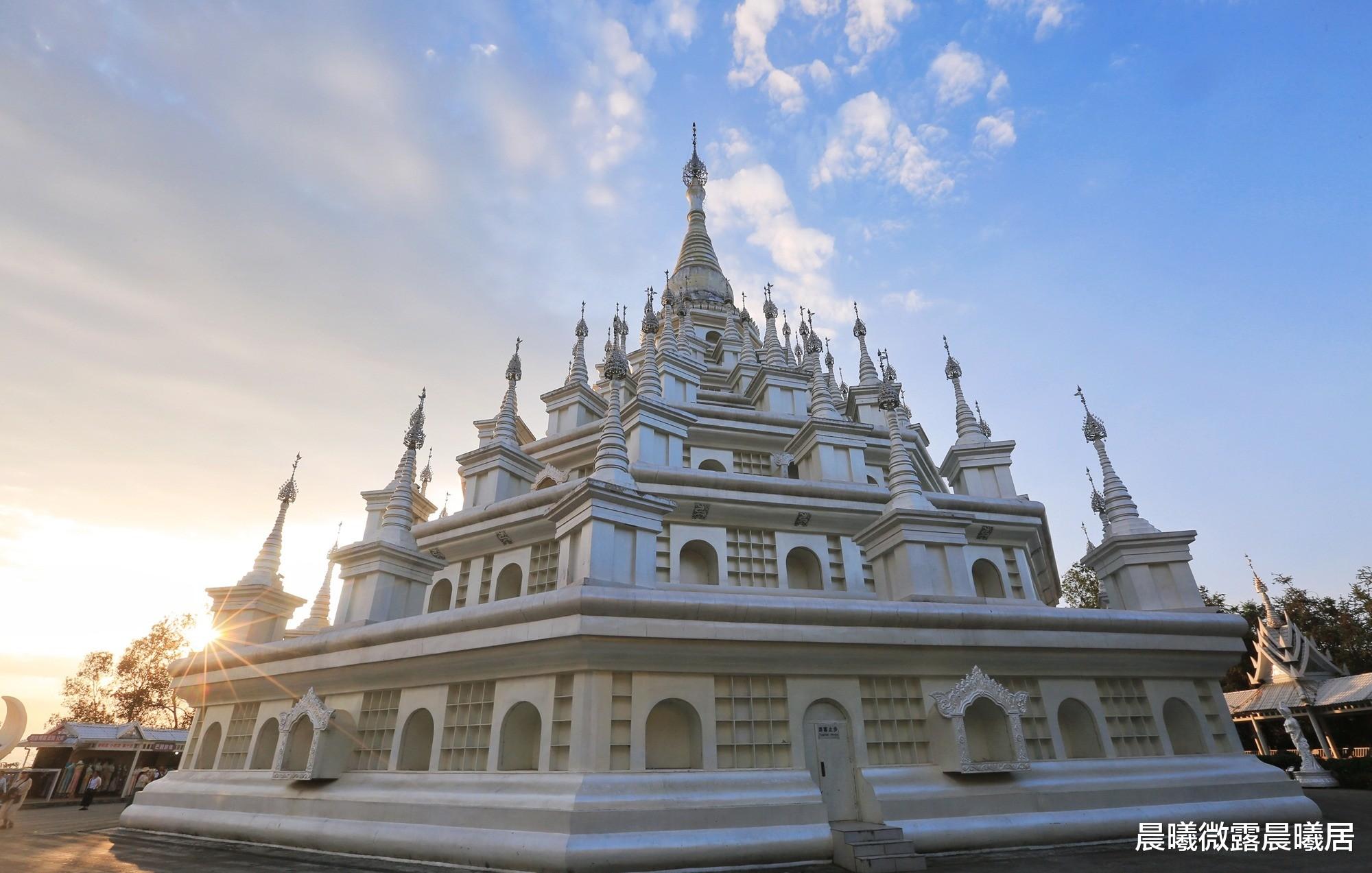 勐焕银塔,光听名字,就带着一种神秘感。当你真正站在它面前时,那种震撼是无法用言语形容的。66米的高度,相当于22层楼那么高,通体银白,在阳光下熠熠生辉,圣洁而庄严。塔身由下向上层层收缩,线条流畅,造型精巧,顶部高耸的塔尖直指云霄,仿佛要将人们的祈祷带到天际。