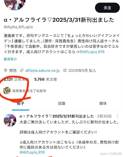 最近X平台(也就是原来的Twitter)上发生了一件“偷看没关门”的名场面。22岁的日本美女声优高尾奏音,被网友发现居然关注了一个18X账号。