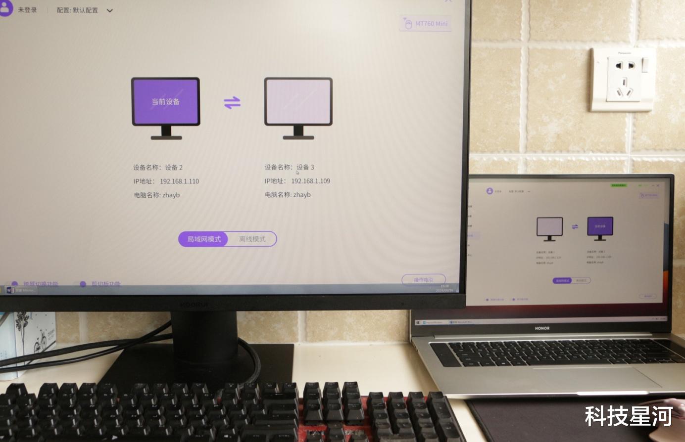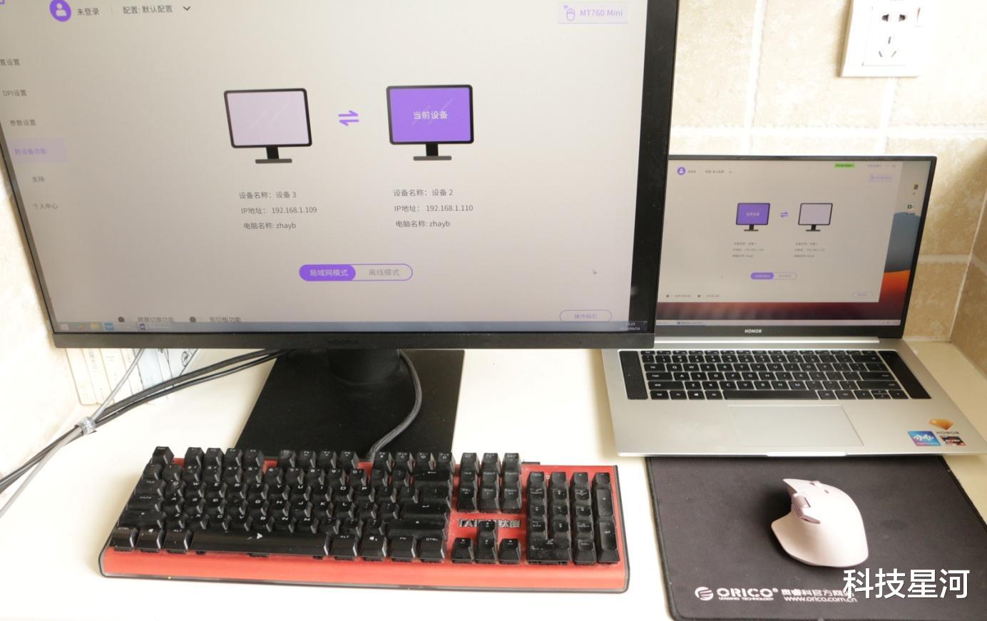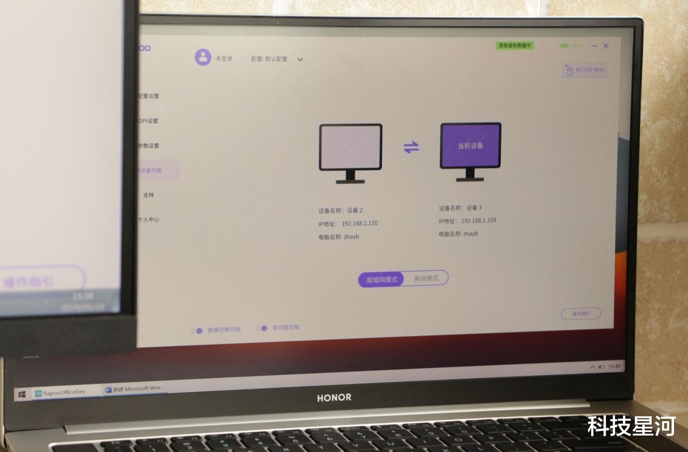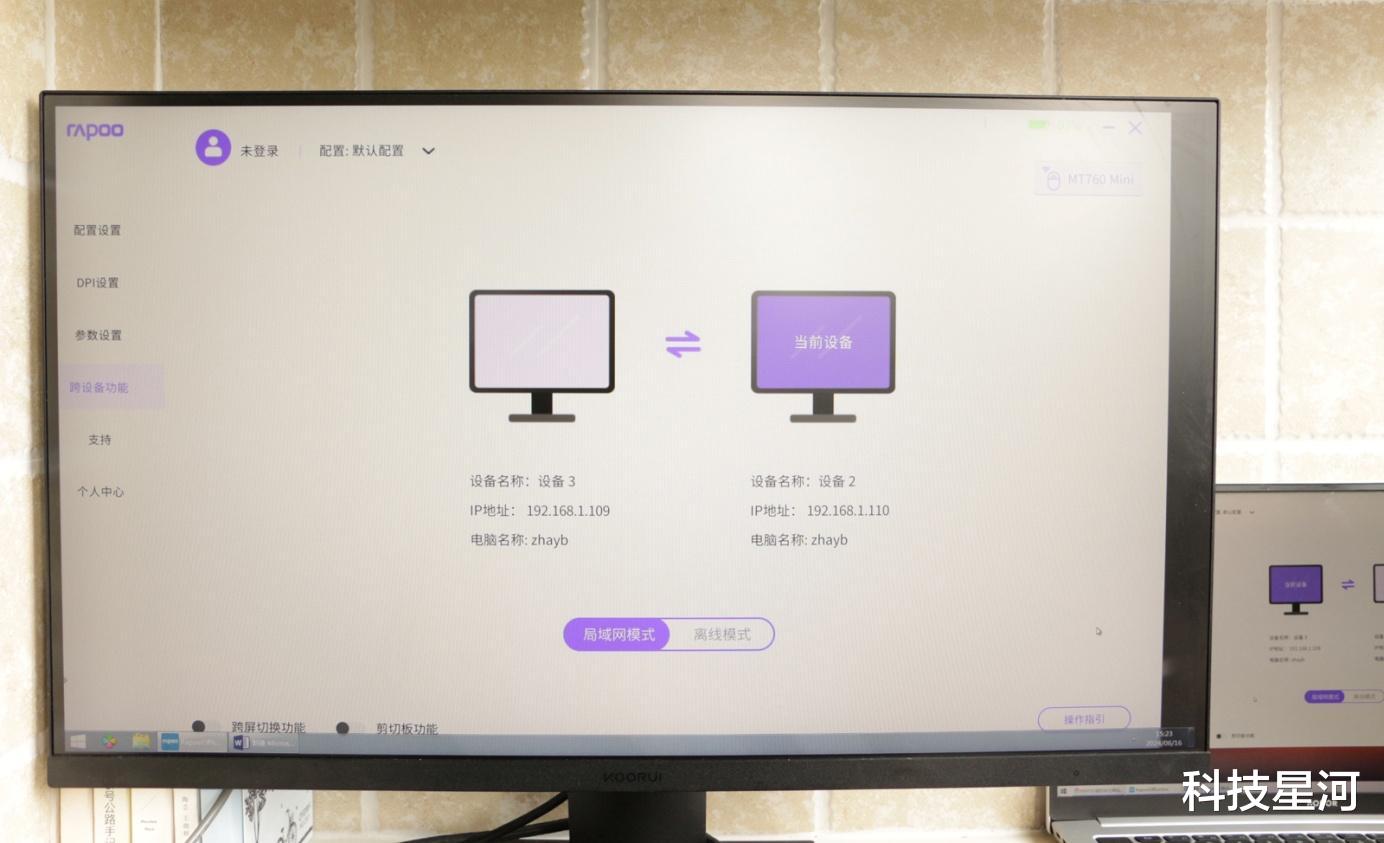 在雷柏官网上下载MT760驱动软件并安装,局域网模式下进行无线跨屏操作。