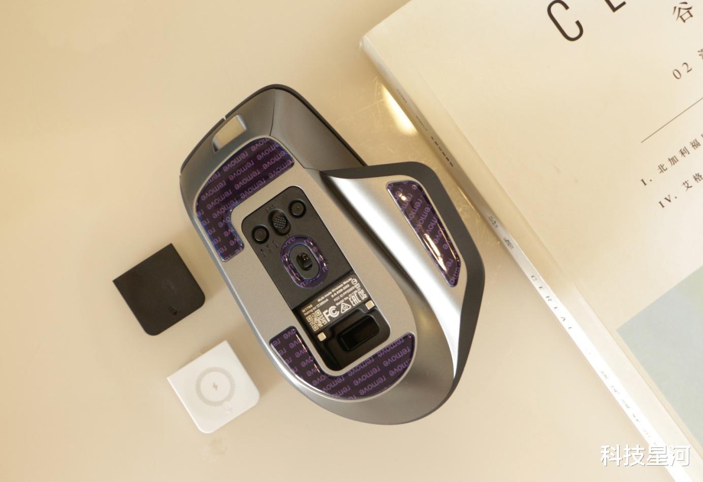在鼠标的底部,设置有磁吸USB接收器收纳仓和无线充电模块扩展仓,对于长时间外出不方便及时充电的情况,建议自己选购个无线充电模块,充电比较方便。