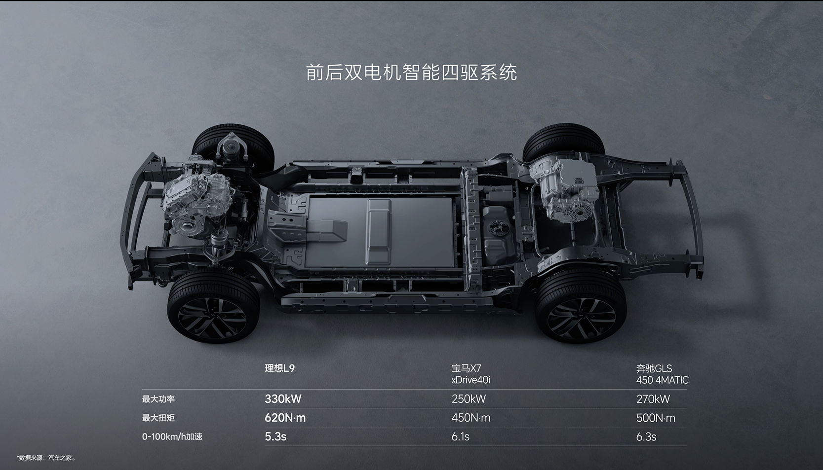 理想L9 Max正式上市,售价为45.98万元。动力方面,前后双电机智能四驱系统,提供330千瓦的最大功率和620牛·米的最大扭矩,0-100公里/时加速时间为5.3秒。电池方面,采用了新一代三元锂电池组,总电量达到44.5千瓦时。CLTC标准下纯电续航里程达到215公里,WLTC标准下纯电续航里程达到180公里,提供了更长的纯电里程。增程发电系统方面,理想L9采用了理想新晨公司自主研发和生产的1.5T四缸增程器,热效率最高达到40.5%,CLTC工况下热机油耗低至5.9升/100公里。配合更低的风阻系数和更高的电机效率,理想L9的CLTC总续航里程为1315公里,WLTC总续航里程为1100公里。理想L9还拥有3.5千瓦的对外放电功能,车内车外具有双供电系统。